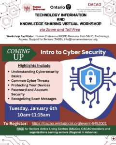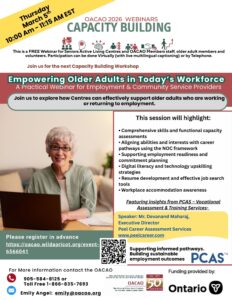 Some topics covered in our Workshops and Webinars are also appropriate for clients of our Older Adult Centre Members- all are welcome