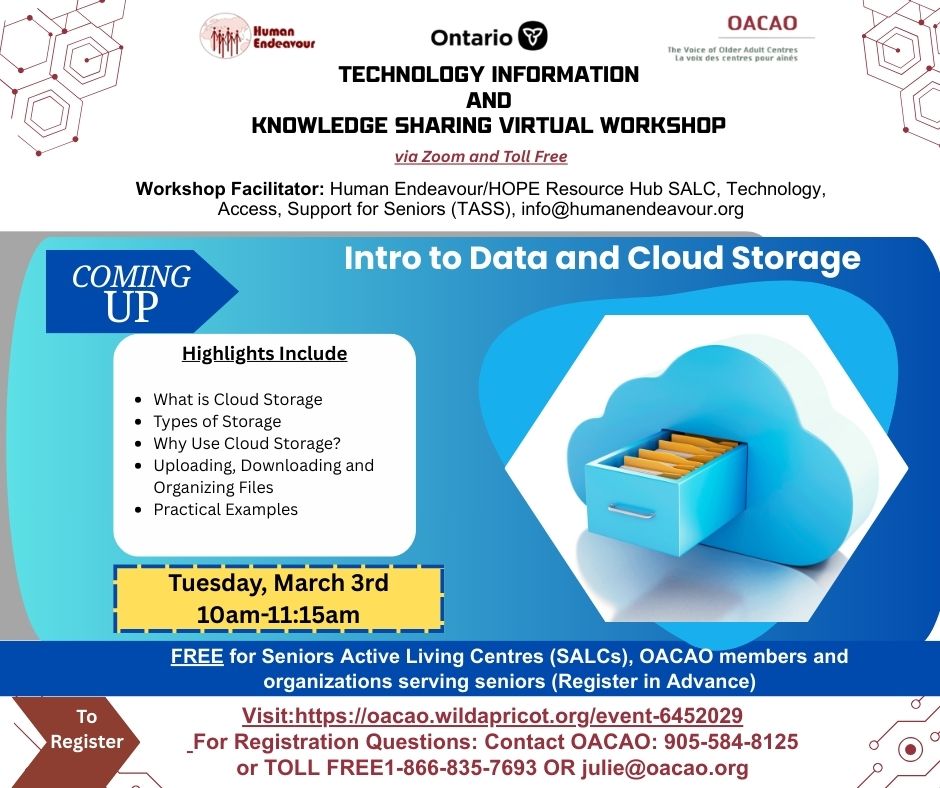 Some topics covered in our Workshops and Webinars are also appropriate for clients of our Older Adult Centre Members- all are welcome