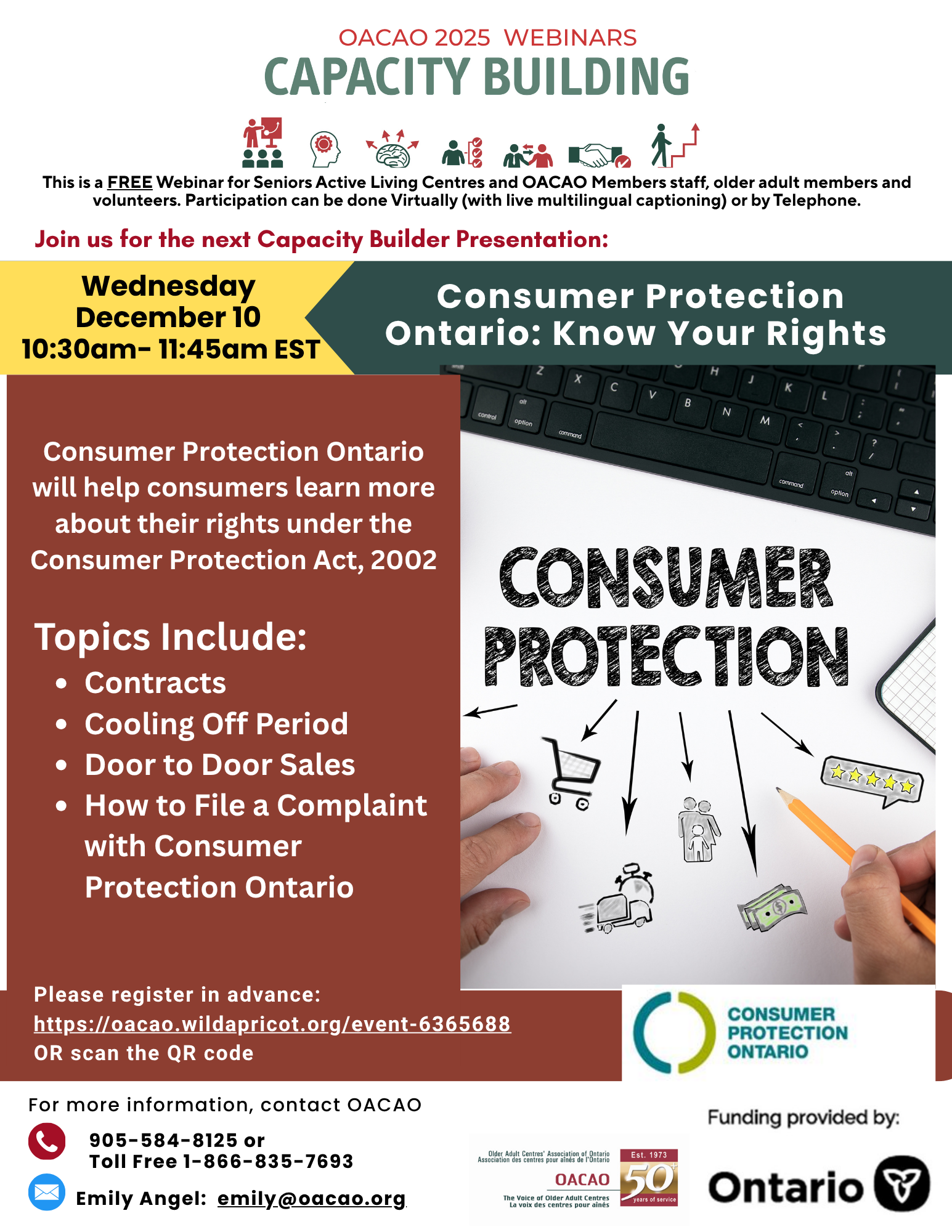 Capacity Building Webinar: Consumer Protection Ontario- Know Your Rights